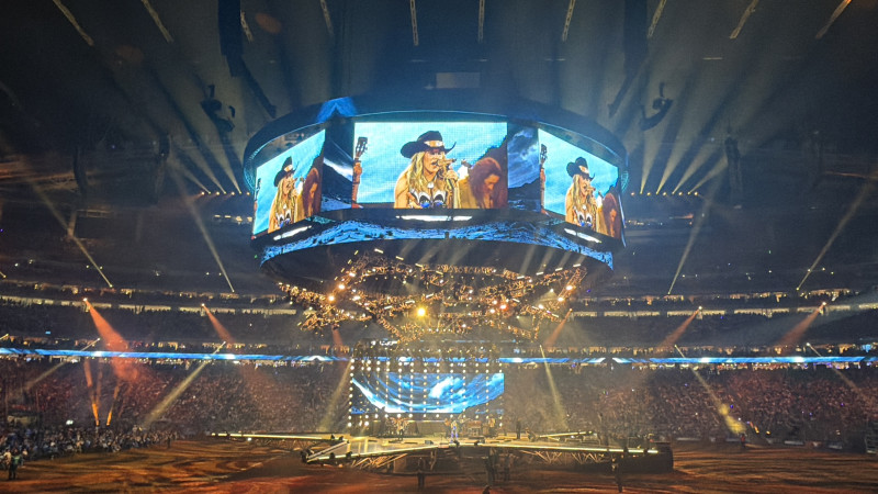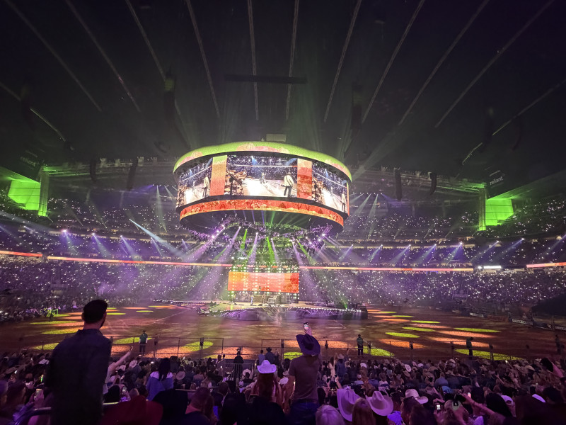 【美南新聞泉深】2026年3月19日晚,鄉村音樂當紅女星Lainey Wilson重返休斯頓牛仔節(RodeoHouston)舞台,在NRG 體育場七萬多名觀衆的熱烈歡呼中,奉獻了一場兼具力量與情感的高水准演出,再次鞏固其當代鄉村音樂領軍人物的地位。這是Lainey Wilson繼2024年首度登上牛仔節舞台後的第二次回歸。當年她創下接近7.5萬人入場的亮眼成績,而今年演出門票在開售後短時間內即告售罄,成爲本屆牛仔節最受矚目的熱門場次之一,顯示其持續攀升的人氣與市場號召力。開場即高潮:星形舞台與燈光秀交織